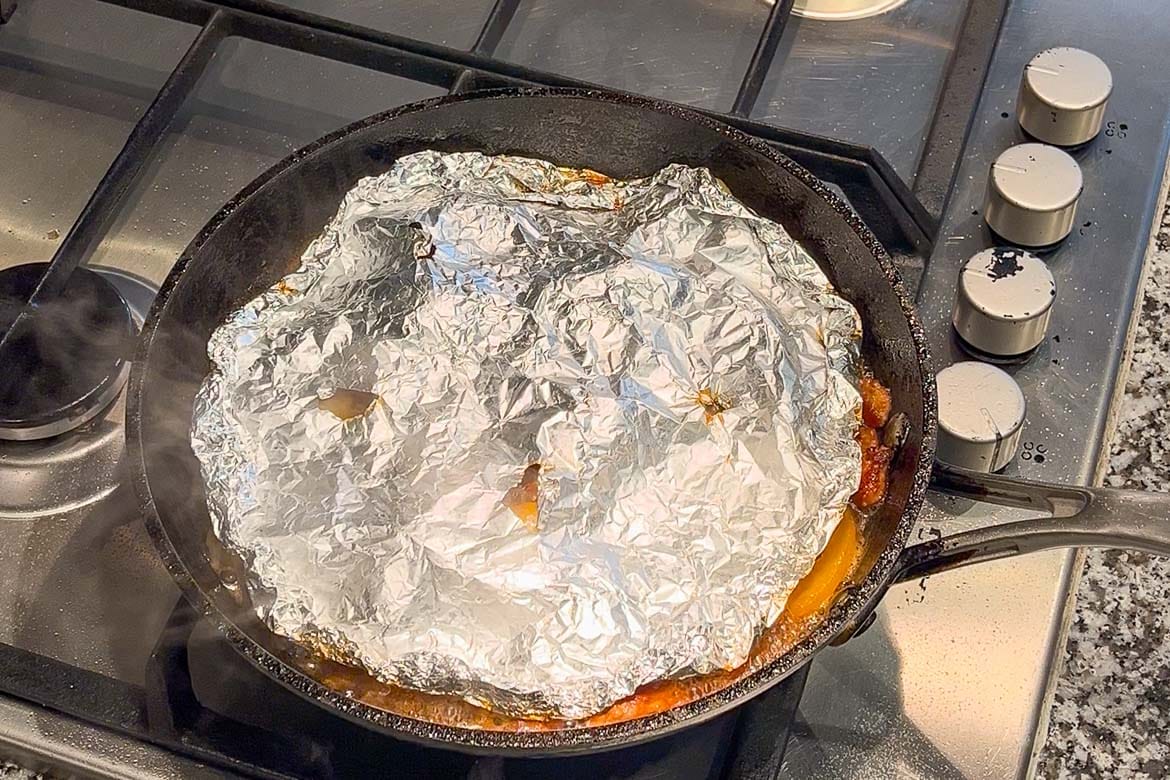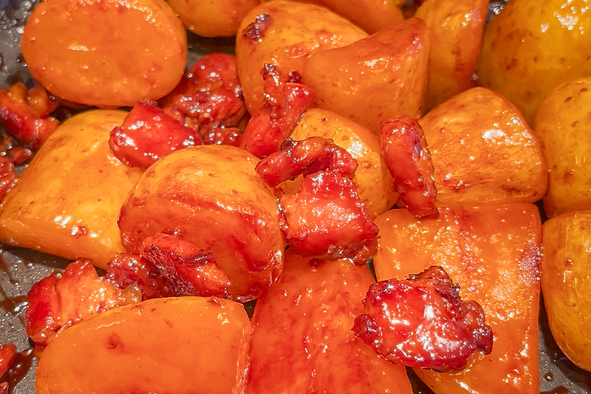 Cook for about 10 minutes, then flip the potatoes. Cover and cook for another 10 minutes or until the potatoes are fork tender and the sauce has reduced down to a sticky glaze.