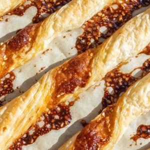 Puff Pastry Twists are a simply strips of puff pastry, twisted and baked. There are loads of recipes out there – both sweet and savoury. They’re a great way to use up any leftover puff pastry you might have in the fridge.